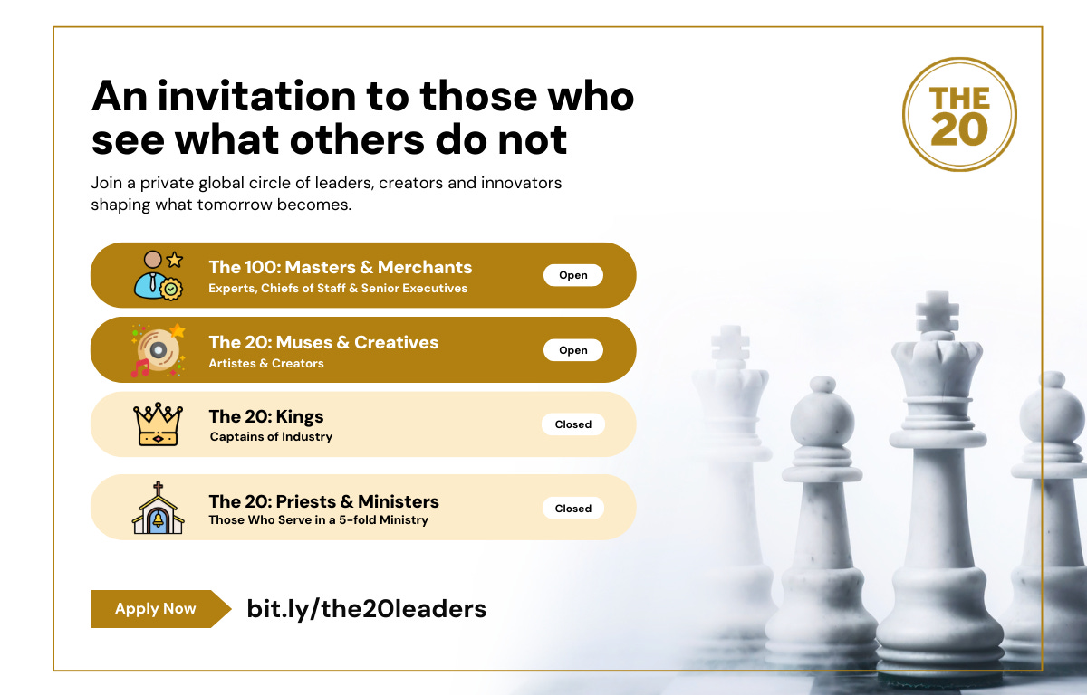 For over three decades, Mr. Leke Alder has shaped minds, built institutions, and mentored leaders across business, ministry, and culture. Today, he is intentionally transferring that wisdom through The 20, a private fellowship for leaders called to influence systems and shape the future.